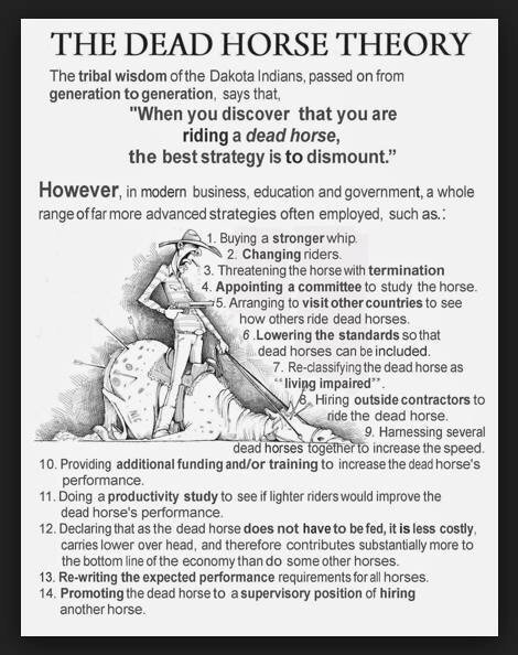 Some of you might be familiar with Dead Horse Theory – if not, you might find the attached interesting and maybe even funny if it weren't so true.